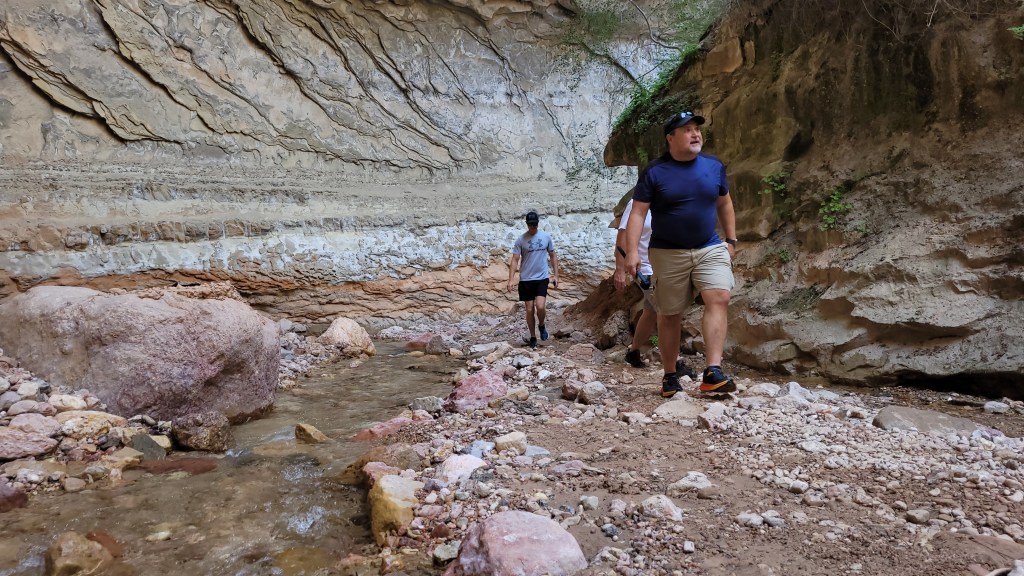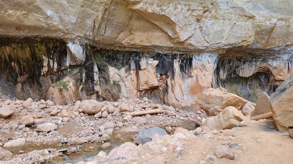 Anyway, we decided to turn back and proceed down Ashdown Creek instead. Boy, am I glad we did! Ashdown Gorge – obviously cut by the waters from Ashdown Creek –reminds me of a smaller Narrows in Zion National Park, but with a lot fewer people! The rocky creek flows through the slot-like canyon with towering, layered walls on either side. Occasionally, we’d come across cave-like alcoves where the water had washed out the rock over time. It was evident that flash floods and spring runoff had drastically taken their toll.