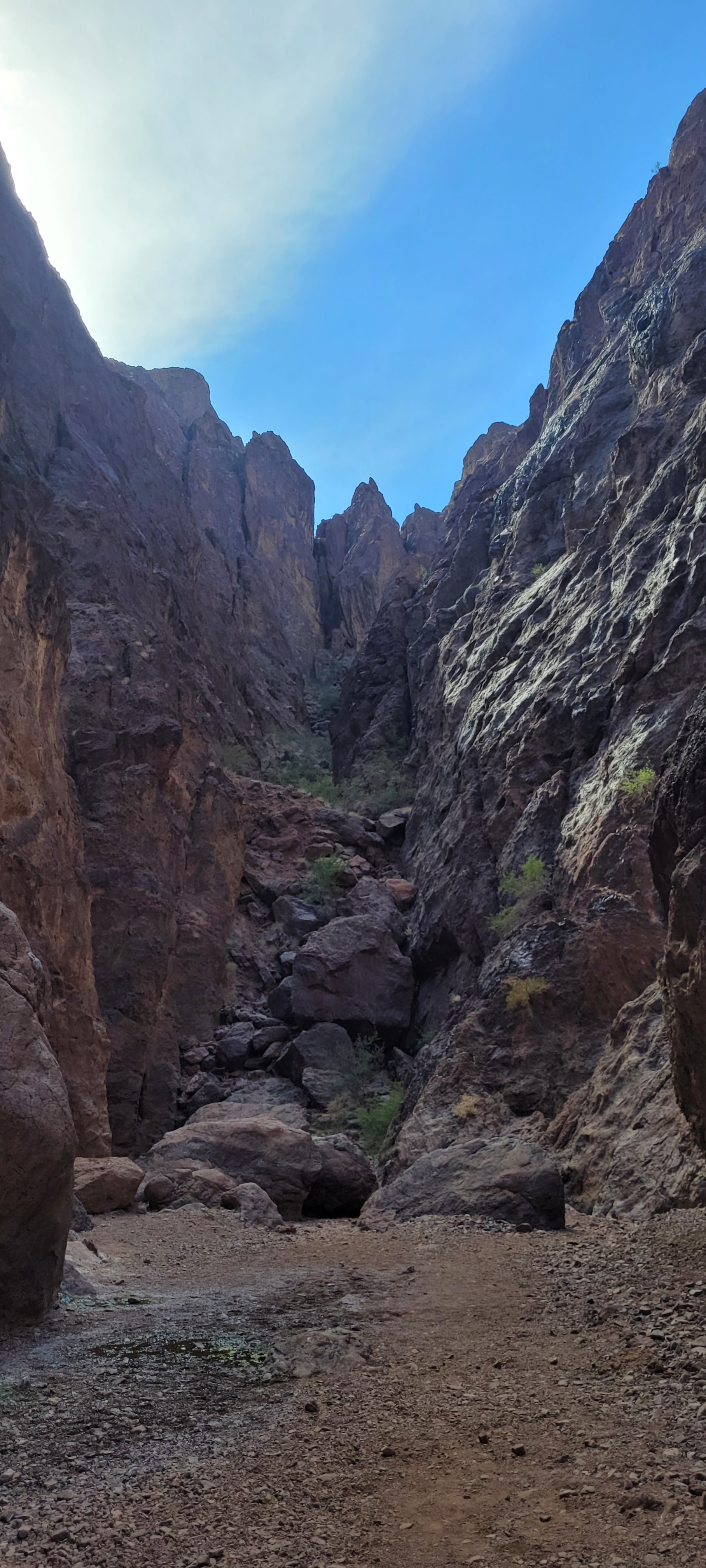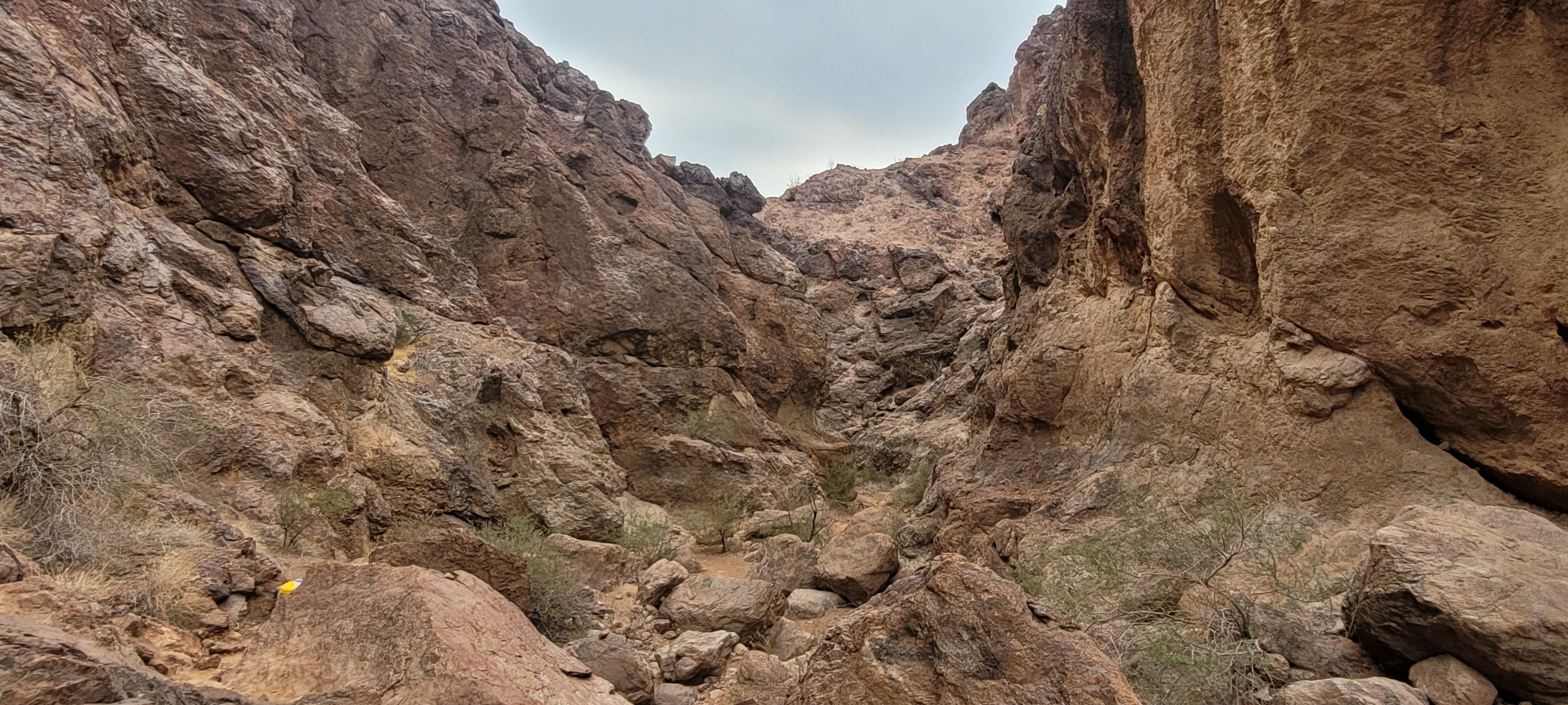 To be honest, the trail’s beginning left a lot to be desired. Starting out under a towering highway bridge didn’t exactly scream “natural escape.” But as the trail wound its way down into a dry wash, things began to improve. The landscape narrowed, towering canyon walls rose around me, and the fun truly began.