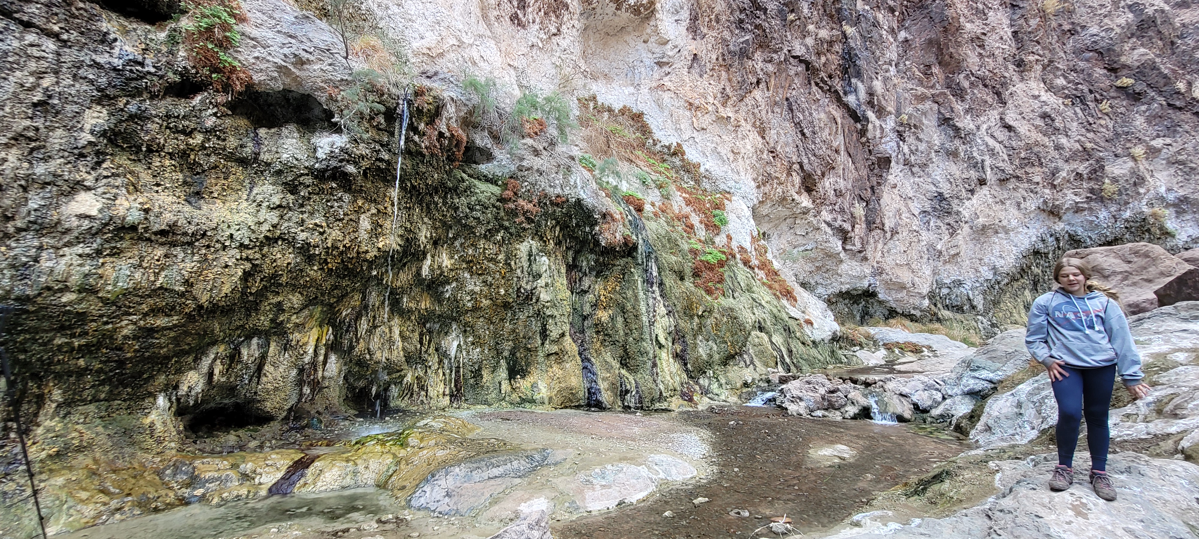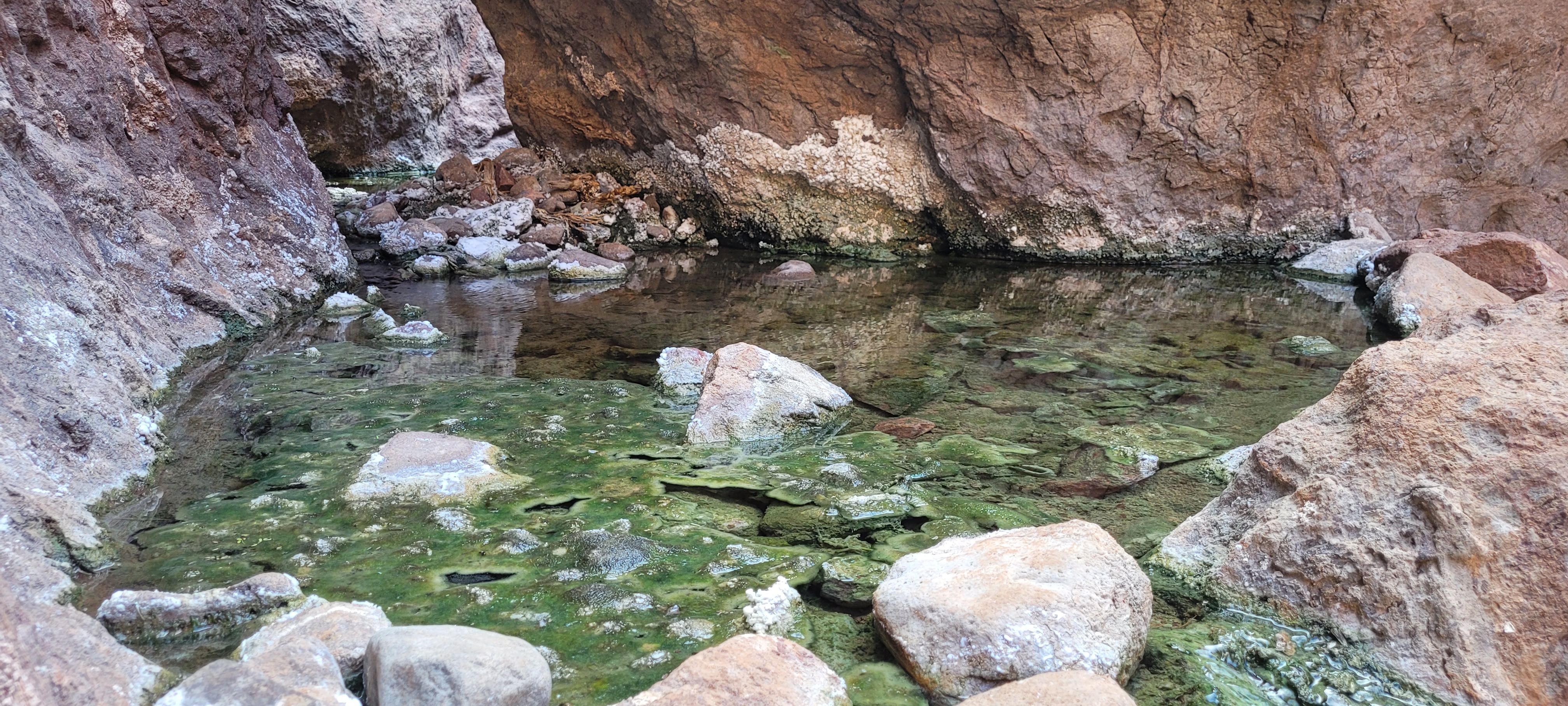 After the effort of scrambling, arriving at the hot springs felt like hitting a jackpot. The pools were warm and inviting, a perfect spot to soak and take in the beauty of the canyon. The springs weren’t overly crowded during my visit, but it’s clear this is a popular spot. Graffiti and general wear and tear on the trail speak to its frequent visitors.