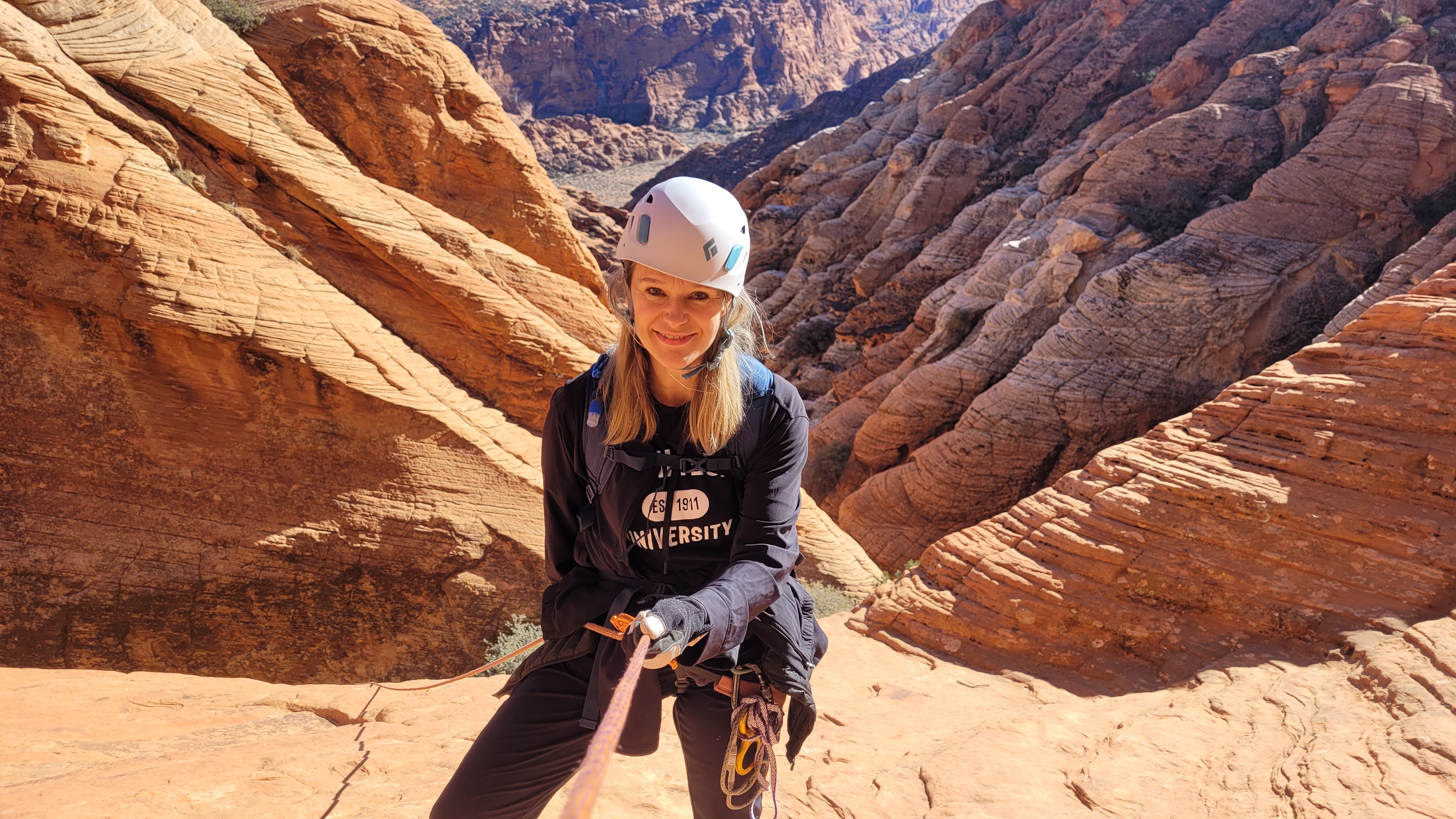 The first rappel is about 100 ft. It’s not too technical. You just have to make sure you have enough rope to get to the bottom. The next six rappels vary from 12 to 70 ft. The third and fourth rappels are short, and some canyoners do them together. We tried that, and let me tell you—I don’t recommend it! Our rope got stuck around the corner, and we spent more time getting it unstuck than if we’d run the two rappels separately.