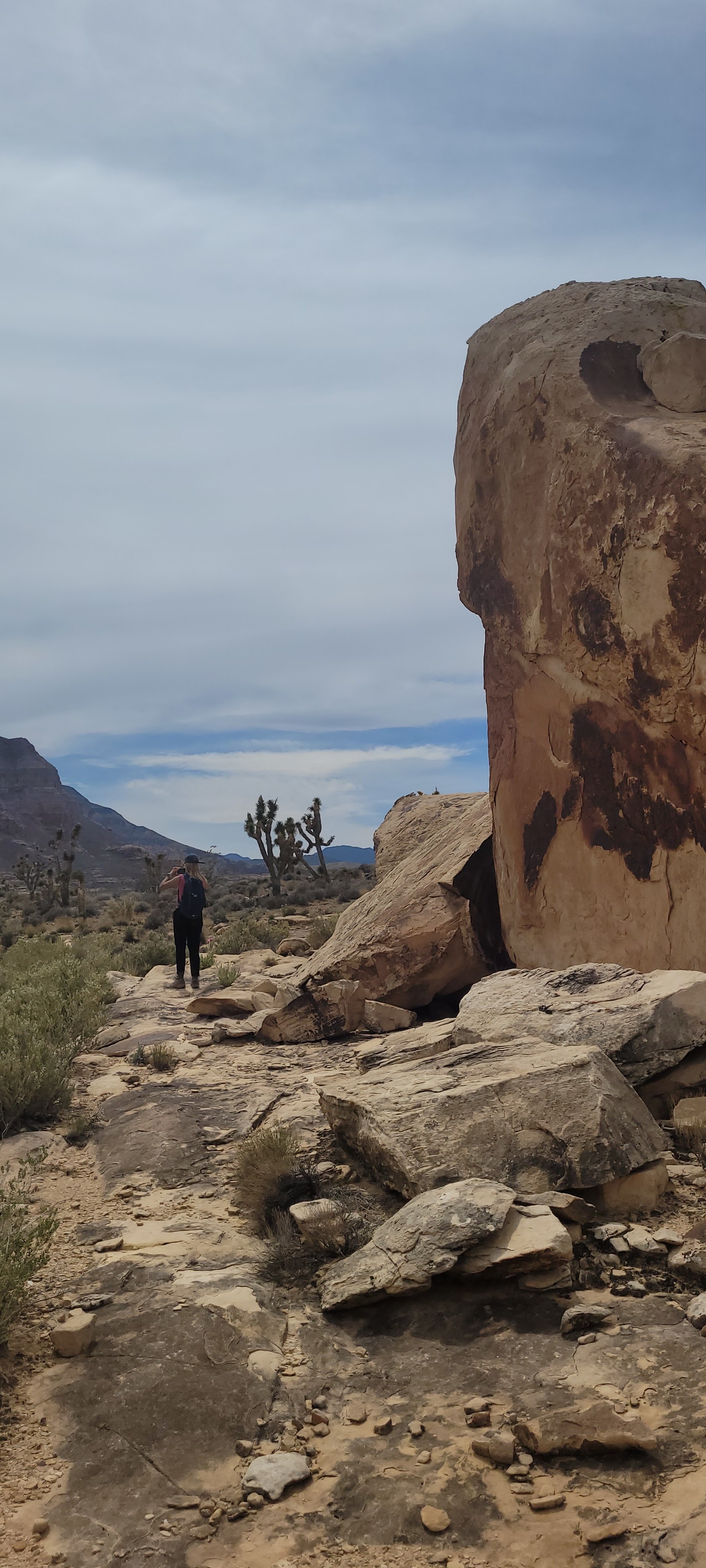 Instead, it’s more of a choose-your-own-adventure trek across desert terrain. Expect a lot of big boulders, creosote bushes and cacti. As you climb, the cliffs ahead slowly grow larger, and before you know it, you’ll be standing near the oddly shaped formation known as Hamburger Rock.